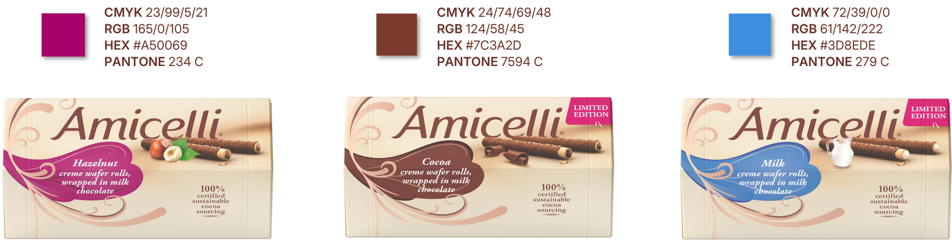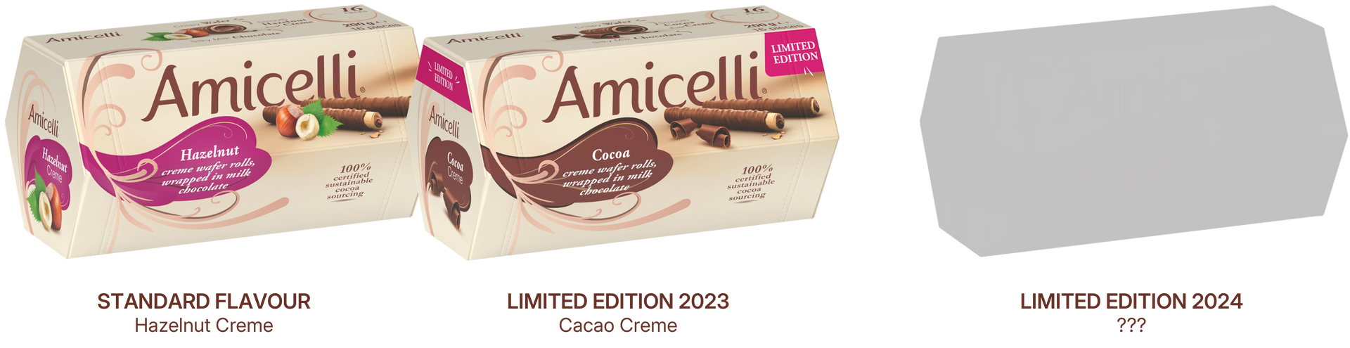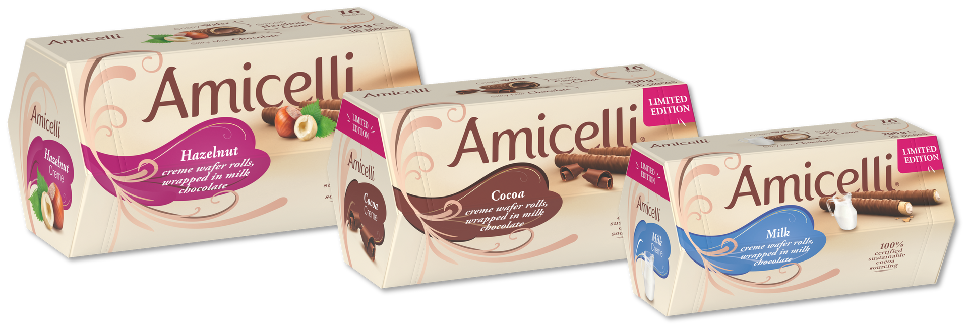 Amicelli are wafer rolls with a perfectly balanced trio of crispy wafer,