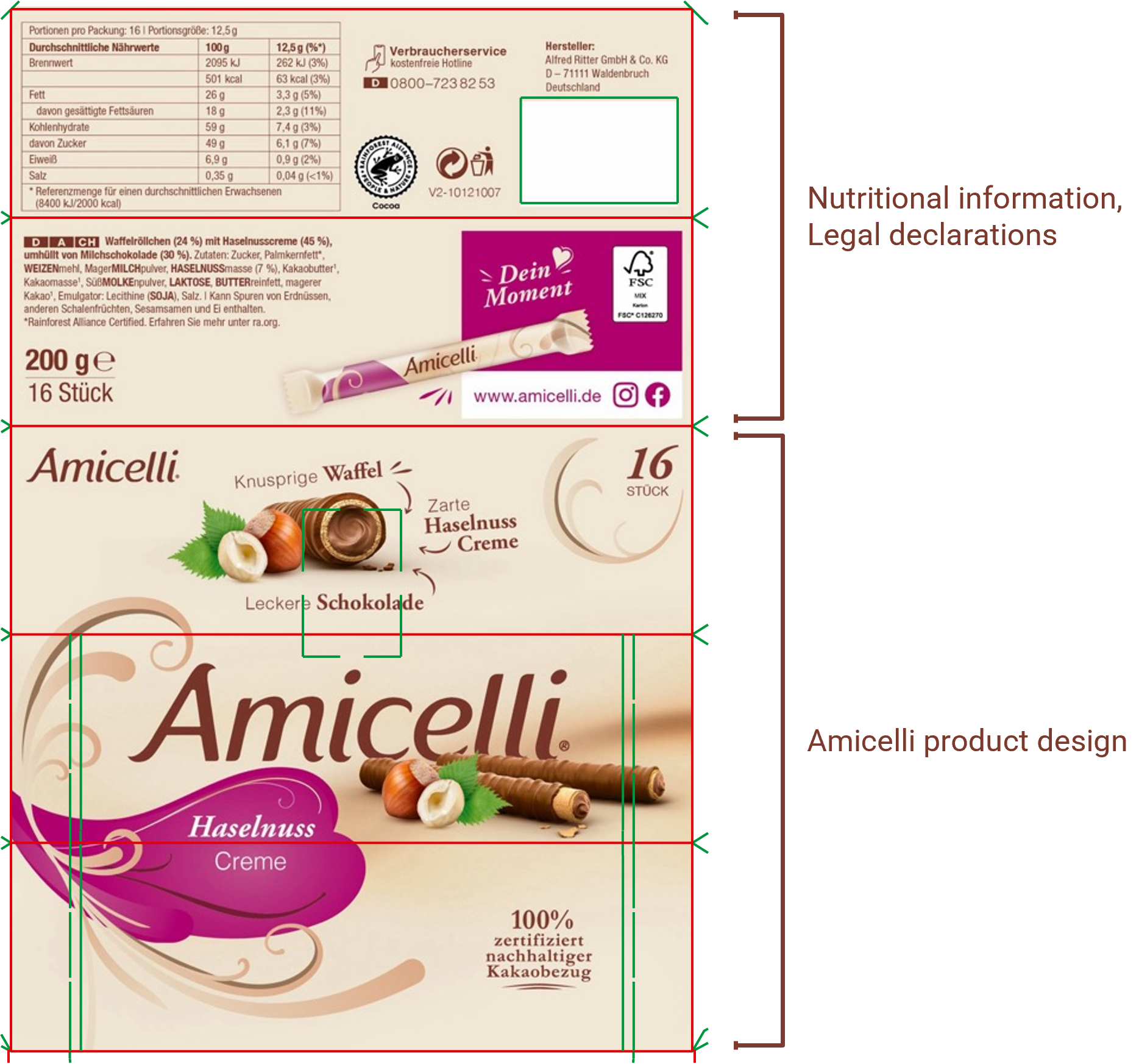 other legal declarations are confined to the upper top part of the packaging to interfere with the design below as little as possible.