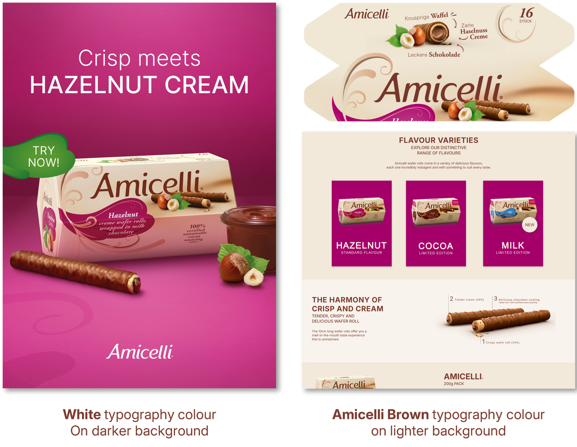 Three main font families are used for the Amicelli packaging.