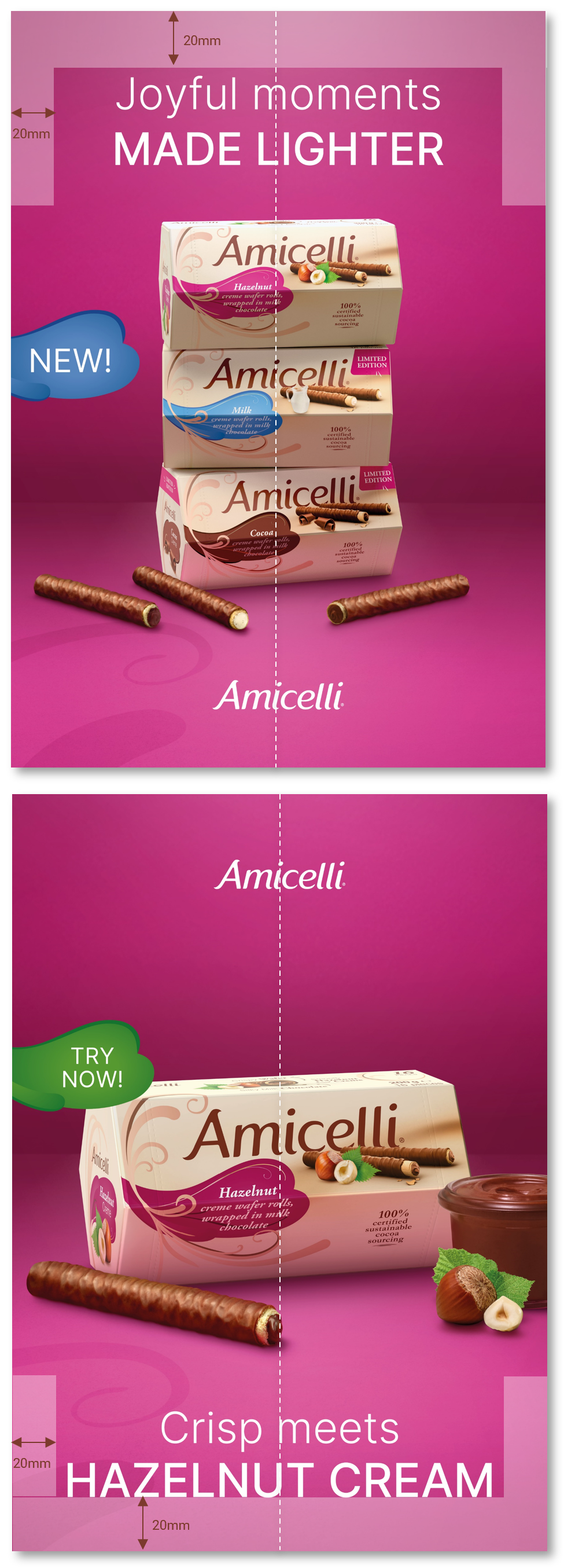Option 1: Center top - Amicelli logo is then placed center bottom
